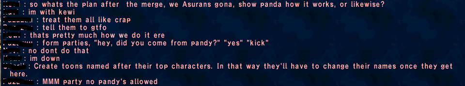 Pandemonium.Bartimaeus said: Asura.Zekky said: Oh the joys of reading WG shout about making you Pandy people feel so welcome on our server... u.u