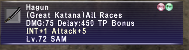 INT+1 Attack+5 on my hagun :D would've preferred acc, but hey, it actually isn't STR-1 DEX-1 VIT+1 like my first dusk gloves.