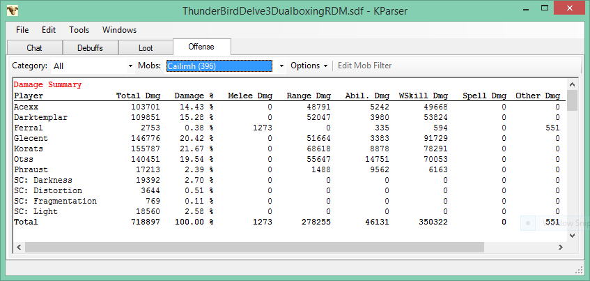 Been extremely busy/out of town/events cancelled etc but finally have a few parses to post from tonight. Keep in mind I was dual boxing a RDM to Flurry II the 5 RNGs and debuff the NM. Glecent, Darktemplar, and Acexx have Yoichinoyumi and Korats and Otss have Annihilator.