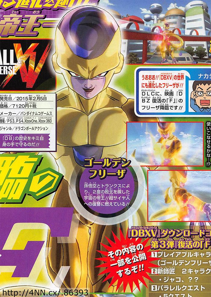 Fans, the new Golden Frieza from the 2015 Dragon Ball Z Resurrection ‘F’ movie is making his way to Dragon Ball Xenoverse as part of DLC Pack 3! The news comes from the 18th issue of Shuiesha’s Weekly Shonen Jump Magazine which also states DLC Pack 3 will contain the following: