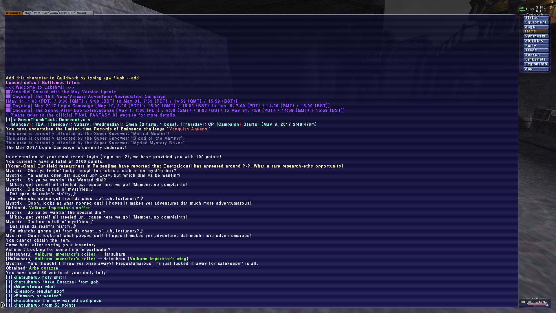 Asura.Ivlilla said: » fillerbunny9 said: » Abdhaljs Tome is a nice idea I guess, though most people spam hard in a few days rather than do 1-2 runs a day for the month.... If I'm recalling correctly, at current prices on Asura, you could make ~90mil gil a month with ~10 hours of work, I think, with that book. Next Mog Bonanza, Rank 1 prize.
