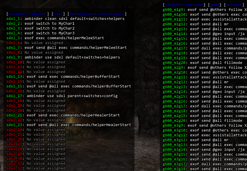AliasMatrixBinder allows you to create and manage multiple sets of aliases for different gaming devices and automatically switch between them based on various conditions like login or job changes.